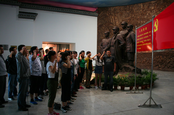 在新四军军部旧址,聆听了现场的讲解,重温了革命战争史,深刻缅怀革命先烈的丰功伟业,让大家亲身感受到了先烈们磊落的胸怀与崇高伟大的献身精神,在思想深处受到了一次党性洗礼。在新四军军部旧址史料陈列馆,全体教师党员面对鲜红党旗和伟岸的烈士纪念碑,举起右拳庄严宣誓,重温入党誓词。