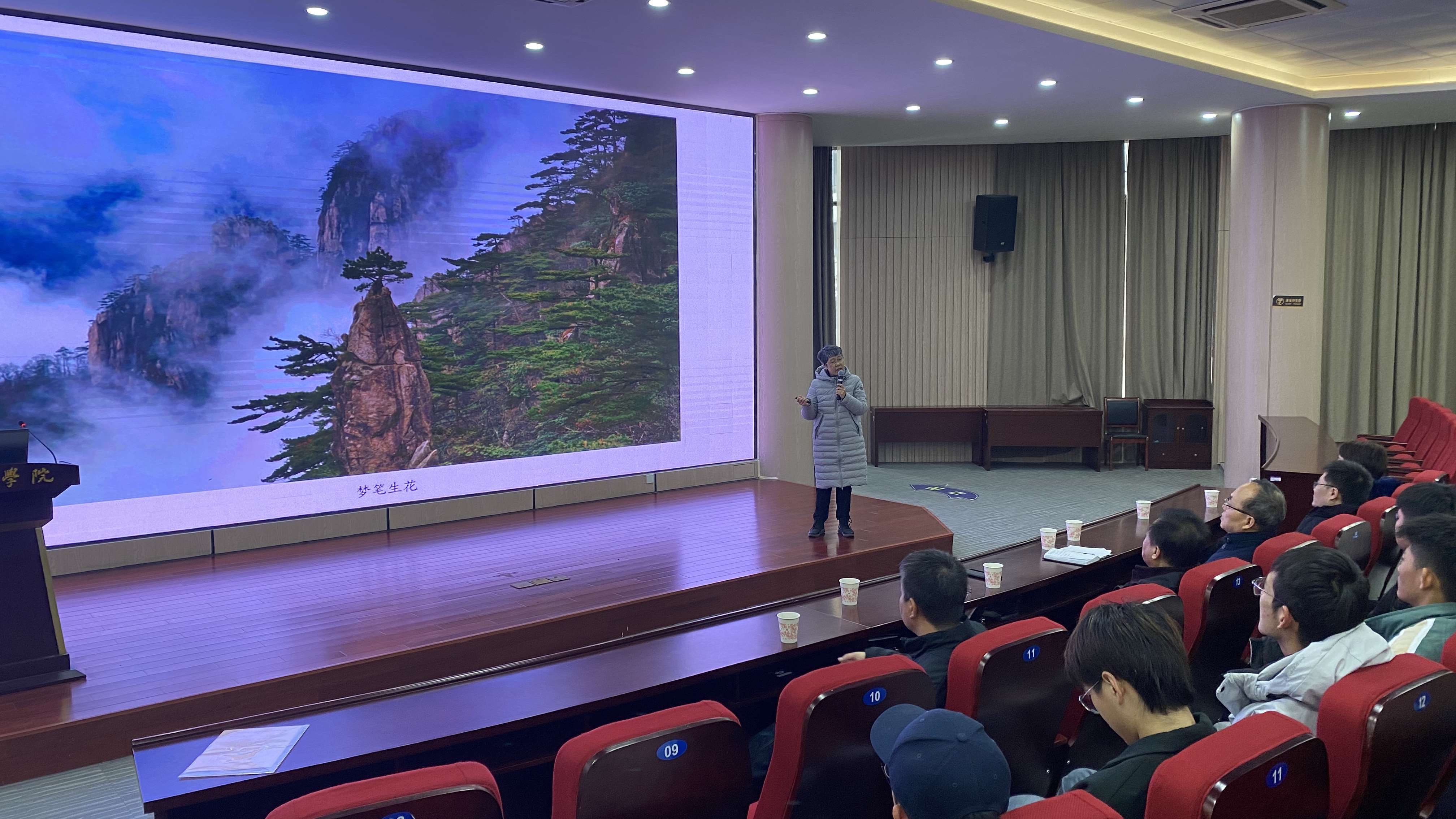 黄山的奇松、怪石、云海、温泉、冬雪你见过么?黄山画派、石刻、古道、诗文、名人文化背后有怎样的故事?黄山自由行旅游线路该如何设计?这些知识点的分享让在场学子纷纷表示收获很多。在互动环节,同学们踊跃参与,有的谈与黄山的相识,有的谈对黄山的感情,有的为黄山的对外传播支妙招,现场气氛充满了欢乐。集体朗诵《黄山松精神》将本场活动推向高潮。