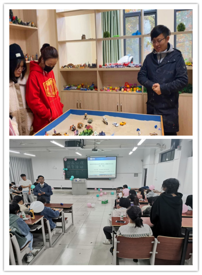 本次活动以一般团辅游戏、团体心理沙盘游戏为载体开展。一般团辅游戏中,章勤带领同学们参与了“你划我猜”、“捆绑过关”、“十指连心”、“我有你没有”、“对折大战”、“筷子传球”等趣味团体游戏。杨潇老师带领同学们以寝室为单位,开展团体沙盘游戏。活动后,两位老师对活动进行总结,“在轻松的游戏中,希望同学们能够打开心扉、释放压力、树立积极的生活态度,学会以团队的形式携手解决问题,体验成功的喜悦,增强自信,在轻松、相互信赖的寝室团队中体验成长。”
