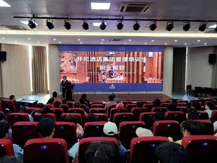 座谈结束后,总一行在院长金声琅等的陪同下参观了旅游管理省级示范实验教学中心。随后,在文端二楼报告厅面向毕业班学生开展了《开元酒店集团管理培训生职业规划》宣讲