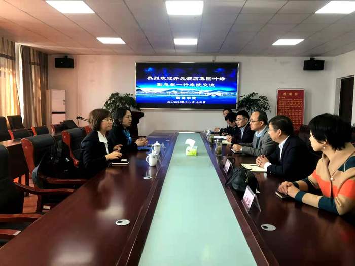 开元酒店集团起步于1988年,规模位列全球酒店集团第18位,位列国内饭店集团全服务饭店规模第一,是中国领先的酒店集团之一。截止今年10月底,开元酒店集团管理和签约的酒店逾557家,客房总数逾10万间,分布在北京、上海、浙江、江苏、安徽等中国28余个省、自治区、直辖市,遍布全国120余个城市。通过本次交流,双方加深了了解,将推动旅游学院与开元集团的深度校企合作,也将使得双方校企良好的合作关系更为紧密,进一步将校企合作进行全面提升、深度融合,调动和发挥好各方的资源优势,实现“建设校企命运共同体,多方共赢发展”的美好目标。