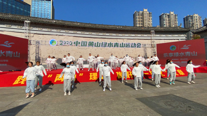 11月8日上午,2020年中国黄山绿水青山运动会开幕式在市中心城区新安江照壁怀古河段举行,由旅游学院学生为主体的街舞表演《乐享绿水青山》在开幕式进行表演。