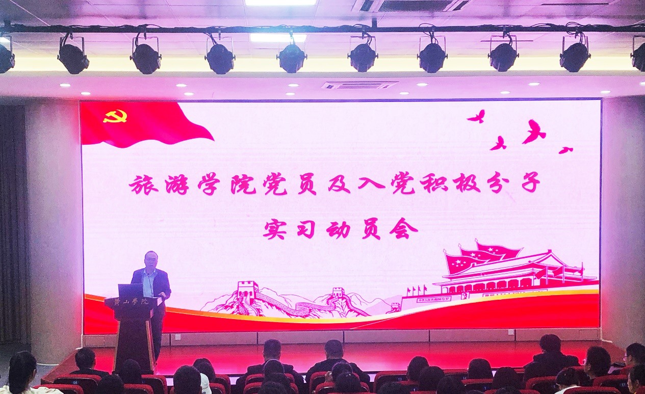 11月4日,旅游学院于文端楼报告厅召开2021届毕业班党员及入党积极分子实习动员会,旅游学院党委书记陶卫平、党委副书记、院长金声琅、党委纪检委员、副院长孙克奎、各支部书记、毕业班辅导员、全体专职辅导员、分片指导教师、2021届毕业班党员及入党积极分子参加此次会议。会议由金声琅主持。