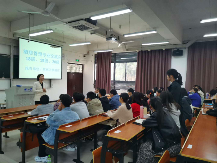 产教融合育英才,校企携手崭新风。为加强学生对酒店管理专业的正确认知,培养学生正确的职业理念,10月26日中午,旅游学院酒店管理专业教研室邀请常州万豪酒店两位职业经理人在文渊楼1105教室开展了一次酒店管理专业主题报告会。酒店管理专业三个年级共220名学生、酒店管理专业辅导员吴宁宁参加此次交流会。