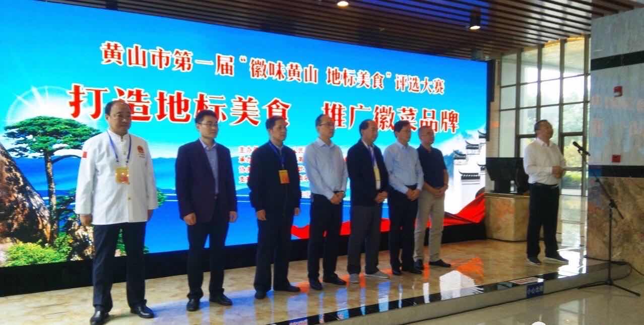 此次大赛由黄山市人民政府主办,黄山市商务局、黄山市文化和旅游局承办,黄山市餐饮烹任行业协会、黄山学院旅游学院协办。安徽省烹饪协会秘书长李正宏、安徽省餐饮协会监事长徐平、市商务局局长李伟、市商务局二级调研员汪宪国、市文旅局二级调研员白俊华、黄山学院旅游学院党委书记陶卫平、黄山学院旅游学院副院长孙克奎、黄山市餐饮烹饪行业协会常务副会长、秘书长张根东出席开幕式。市商务局局长李伟宣布黄山市第一届地标美食评选大赛开赛。全市72家餐饮和食品企业选手各显神通,400余项参赛作品,充分展示了徽菜技艺和精品菜肴风采。