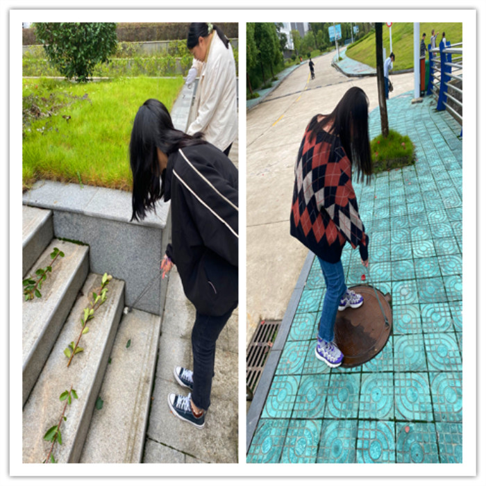 9月23日下午,旅游学院“五彩团光”志愿团队在率水校区教工家属楼、文思楼、文峰楼和文津楼公共区域开展定期志愿活动,对该区域内的主干道、花坛等处进行卫生清理。