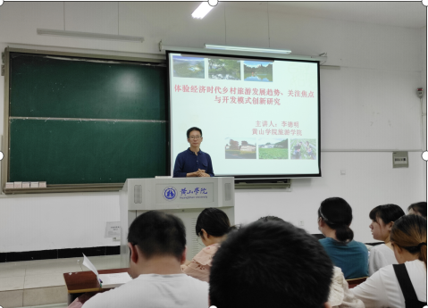 9月8日晚上,旅游学院副教授李德明在率水校区文端楼举办“乡村旅游”专题报告会,围绕乡村旅游发展趋势、关注焦点与开发模式创新研究开展讲座。旅游学院相关专业师生70余人参加了此次报告会。