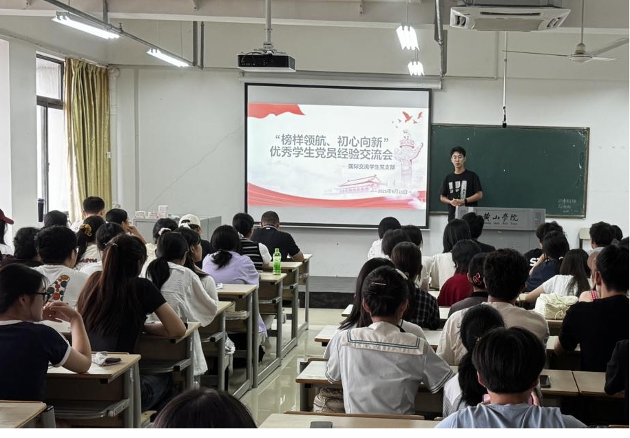 为充分发挥学生党员的先锋模范作用,助力新生更好地适应校园生活,将党性教育与朋辈引领相结合,国际交流学生党支部于9月23日下午,在文思楼71012教室举办了“榜样领航、初心向前”优秀学生党员经验交流会。交流会由支部书记吕晓珍主持,支部学生党员及2025级酒店管理(中法)班同学参加。