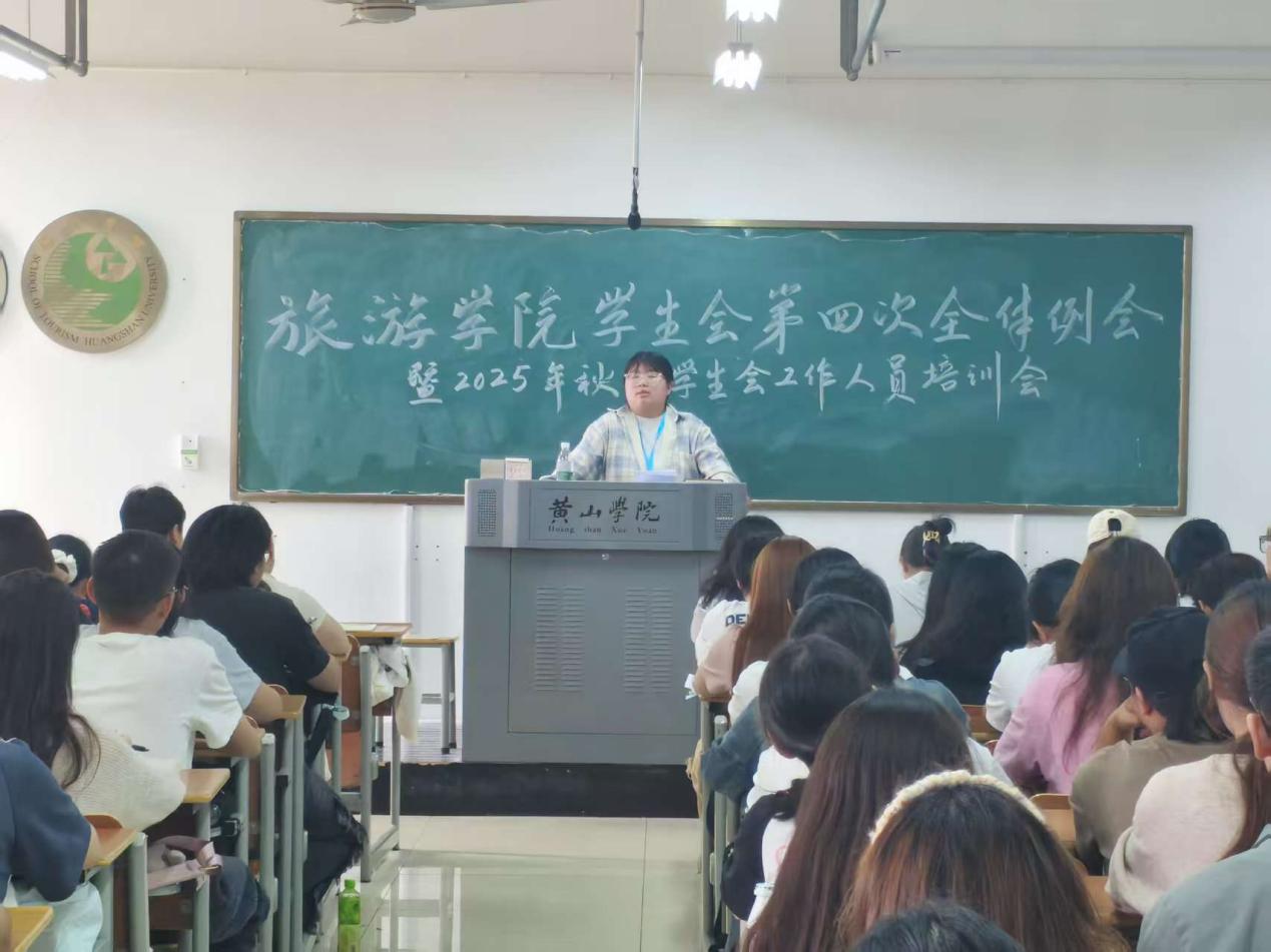 为加强学生会工作建设,提高学生会成员能力素养。旅游学院学生会于10月15日上午在文思楼71001教室举办旅游学院学生会第四次全体例会暨2025年秋季学生会工作人员培训会。本次会议对前期学生会各项工作进行汇报和反思,并对未来工作提出要求和建议。