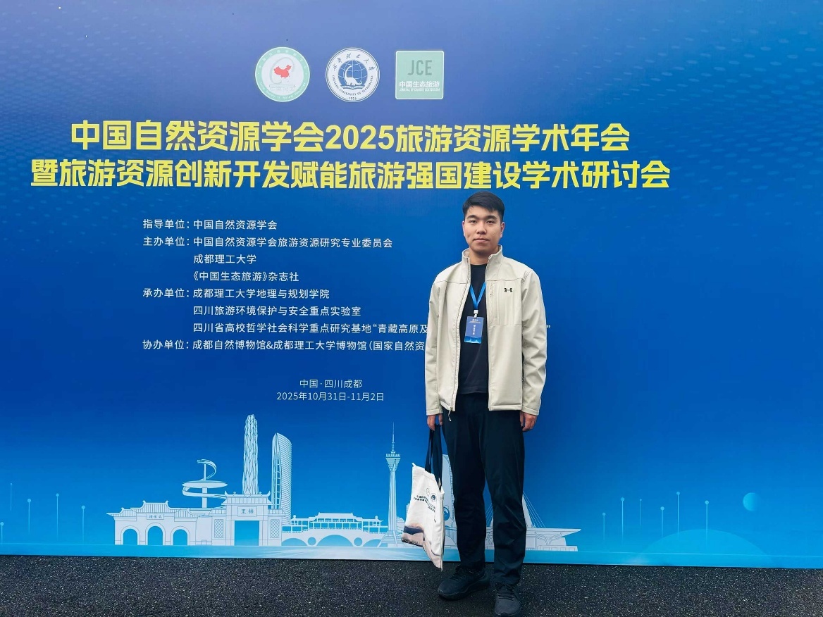 10月31日至11月2日,中国自然资源学会2025旅游资源学术年会暨旅游资源创新开发赋能旅游强国建设学术研讨会在成都召开。此次会议由中国自然资源学会旅游资源研究专业委员会、成都理工大学、《中国生态旅游》杂志社主办,汇聚了来自全国低空经济、旅游地理与旅游营销等领域的权威专家与青年学者,共同探讨旅游资源应用的前沿议题与创新路径。我校旅游学院胡昌伟博士受邀参会,并在分论坛“科技赋能与文旅资源开发”作题为《运用混合方法探索导游-游客社交媒体关系建立的前因后果》的论文汇报。