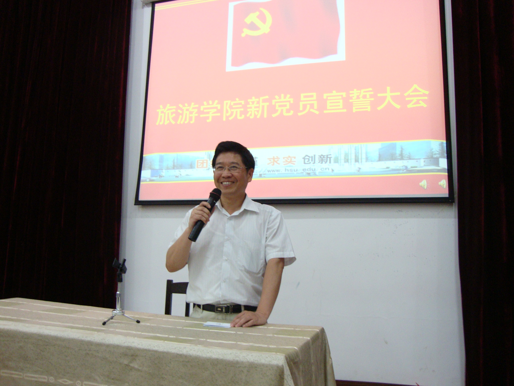 6月25日下午,旅游学院新党员宣誓大会在北区报告厅隆重召开。旅游学院党总支书记毕民智、各支部书记、全体党校教师以及全体学生党员出席了此次大会。会议由旅游学院党总支秘书邱慧主持。