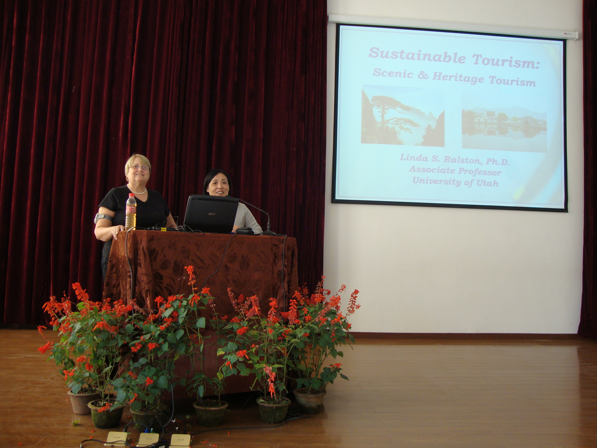 9月21日下午,北区报告厅内座无虚席,来自美国犹他大学国际旅游商贸酒店管理学院的琳达.姚思顿副教授,在此为旅游学院师生做了一场关于旅游可持续发展的学术报告。讲座由旅游学院党总支书记毕民智主持。
