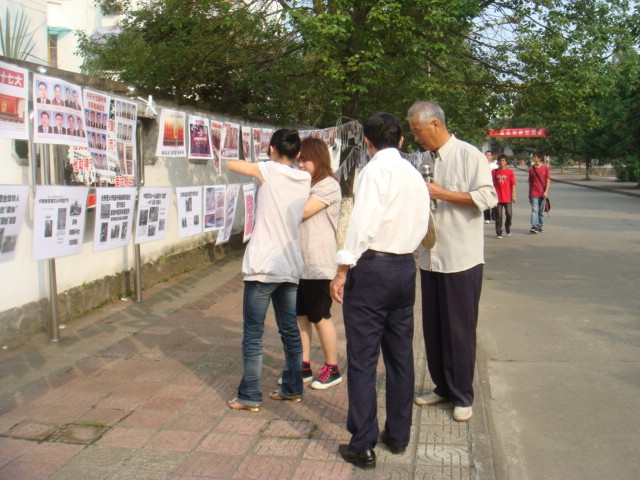 为庆祝建国六十华诞,展现祖国六十年来的辉煌成就,9月26日,由校关工委主办,党委宣传部、学生处、团委,旅游学院分团委新闻部、宣传部协办的庆祝中华人民共和国成立60周年图片在北区教学楼前展出。