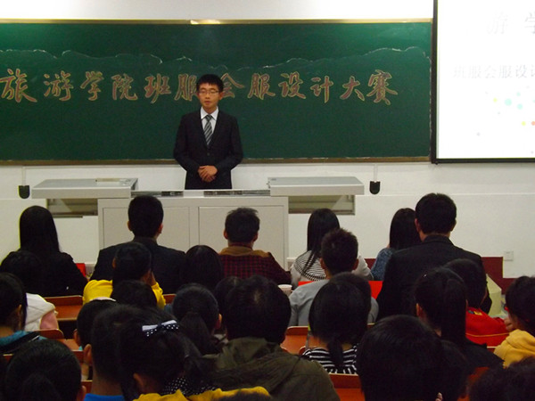 10月24日晚,旅游学院首届班服会服设计大赛于北区1503教室如期举行。来自13级各专业共九个班级参加了本次比赛,旅游学院分团委负责人项昱老师出席本次大赛。