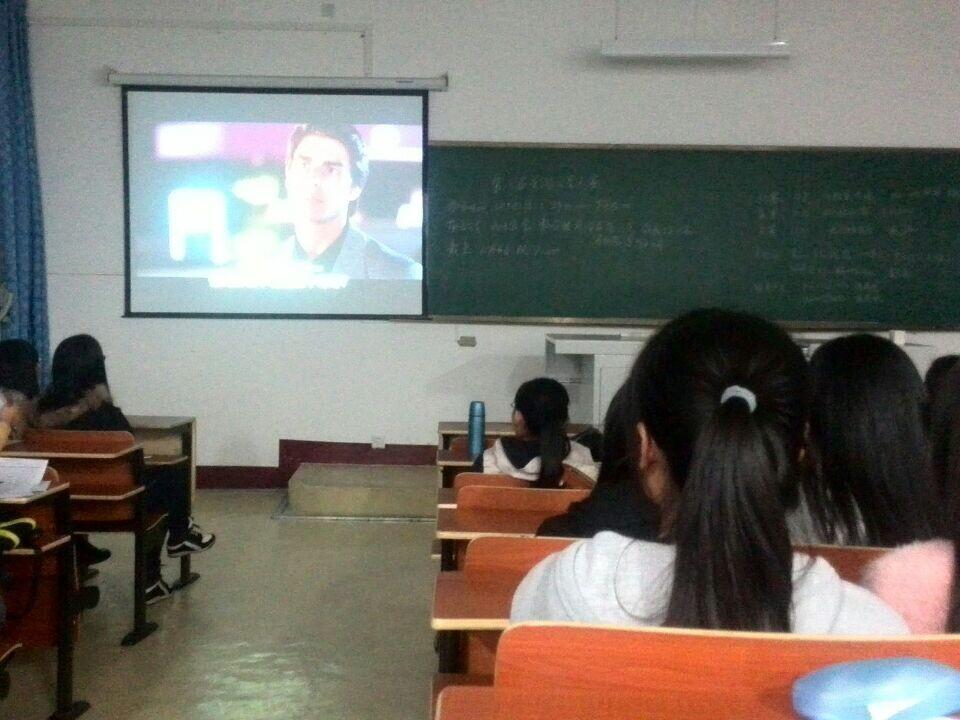 在大学英语王毅聪老师的提倡号召下,班长吴庆安同学给大家放映了英文电影《Rain Man》。这部电影围绕道德和亲情展开了一系列的故事,同学们时而大笑,时而愤怒。随着影片情节的不断进展,大家的情绪也在不断的为之触动。《Rain Man》中塑造的主人公“雨人”让大家感触颇深,地道的英文对话,滑稽有趣的人物表情,把现场气氛推向了高潮。最后,伴随着影片美好的结局,本次放映活动也圆满结束。