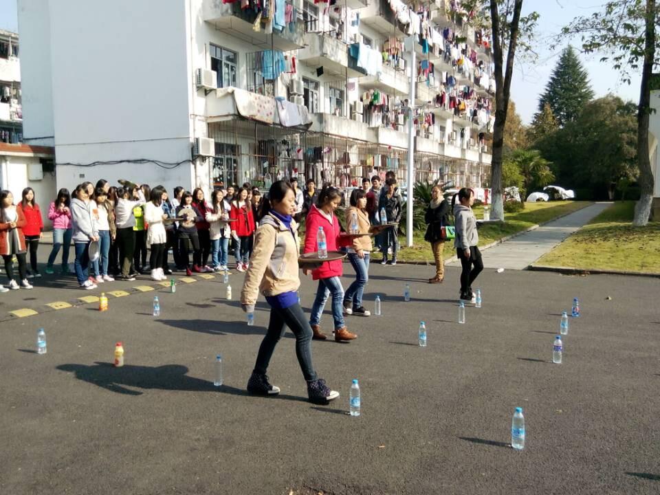 2014年11月13日上午,13级酒管2班于阳光宾馆前开展了趣味餐饮服务实践课。此次实践教学由陈丽威老师组织安排,13酒管2班全体同学参与。