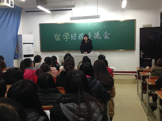 会上,吴文婷学姐跟同学们交流了她出国学习的感想,耐心地向学弟学妹们介绍了韩国留学生活和学习方面的情况,包括物价、语言、勤工俭学等同学们最为关心的问题,并以切身经历向在场的学弟学妹说明了学好韩语和英语的重要性。