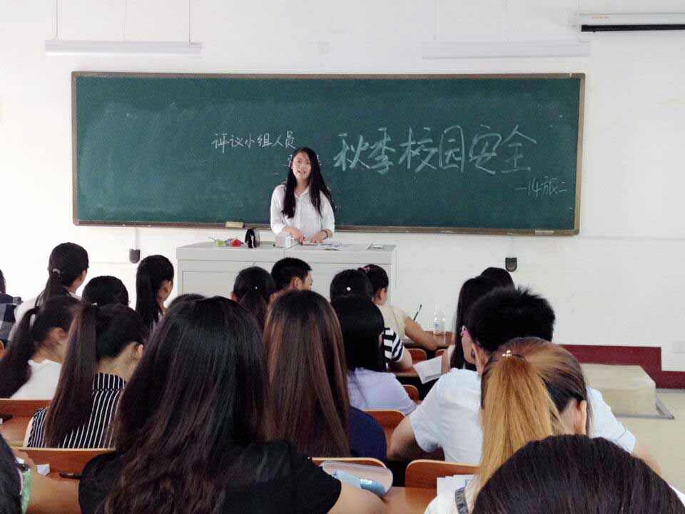 9月10日上午,14旅管(2)班在1203教室召开秋季校园安全主题班会。此次班会由辅导员张瑞老师主持,全班同学参与。