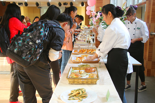 活动首先由该院院长朱国兴致辞,他向在座嘉宾简单回顾了佛朗焙建立三年以来的发展历程以及开展的专业活动情况并宣布品鉴展开幕。此次品鉴会是新生专业导论的一个新的尝试,通过专业技能成果展示,让新生同学们熟悉专业,产生兴趣。活动中所有的物品都是由佛朗焙烘焙坊的学员们在指导老师李毅的带领下完成。外观精致、味道可口的成品让嘉宾、老师和同学们赞不绝口。烹饪专业新生戴一朋说:“这真的是一场视觉与味觉的盛宴,我看到了佛朗焙的专业、创意,品尝到的是同学们对烹饪的热爱和青春的味道,年轻的大学生们充满活力与想象,希望自己以后也能为烹饪行业注入更多青春的血液。”
