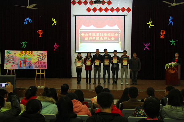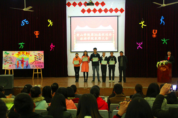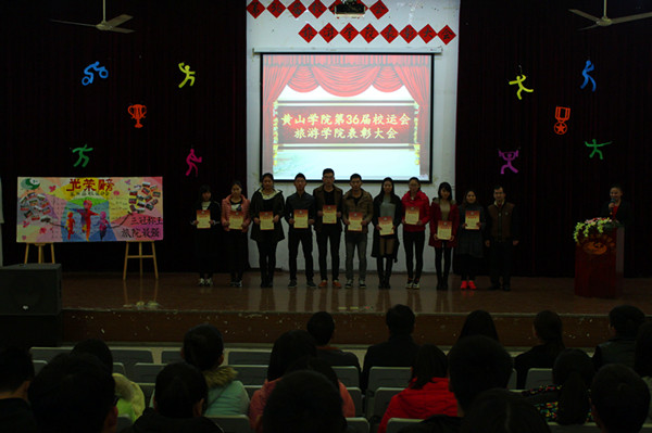 12月2日下午,校第36届运动会旅游学院运动员表彰大会在北区报告厅隆重举行。旅游学院党总支书记毕民智、院长朱国兴、党总支副书记方磊,辅导员张瑞、杨潇、吴宁宁出席大会并为获奖个人和集体颁奖。