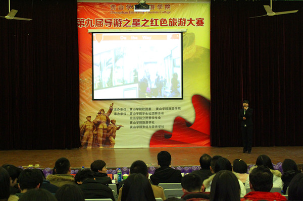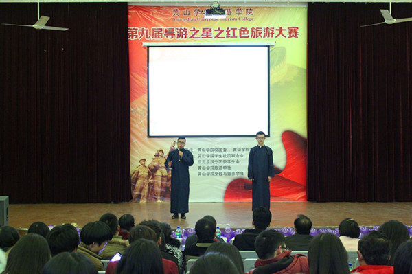 为纪念中国人民抗日战争暨世界反法西斯战争胜利70周年,12月16日晚,旅游学院联合旅游学社、烹饪与营养学社举办第九届导游之星之红色旅游大赛。