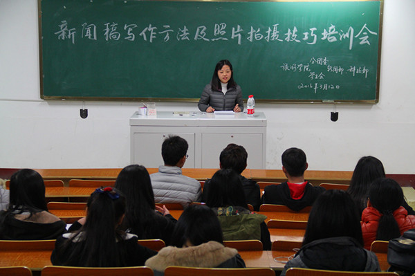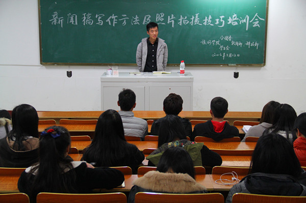 3月12日晚,旅游学院在北区教学楼1101教室举办学生干部培训会——“新闻稿写作方法及照片拍摄技巧”培训。各班级新闻稿负责人员参加了培训会,培训会由院会新闻部部长沈明金主持。