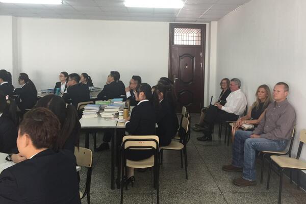 5月17日下午,15酒管中法(1)班接待来自美国西南学院的四位教授,在我班刘婷老师管理学课程旁听,国教院沈科老师做陪同。