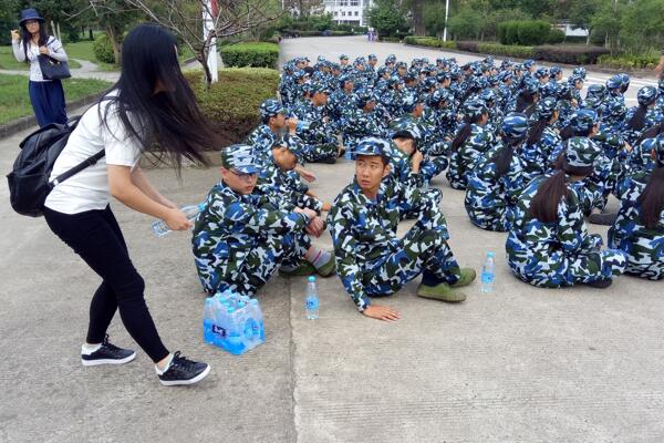 在军训的现场,同学们高喊着口号,迈着整齐的步伐,全身心地投入到军训中,即使在休息的时候,教官还在一旁不停地讲解训练技巧。同学们看到学长学姐们手里搬着矿泉水并分到每个人的手中,眼神中流露的满是感动,并异口同声地说了一句“谢谢学长学姐”。