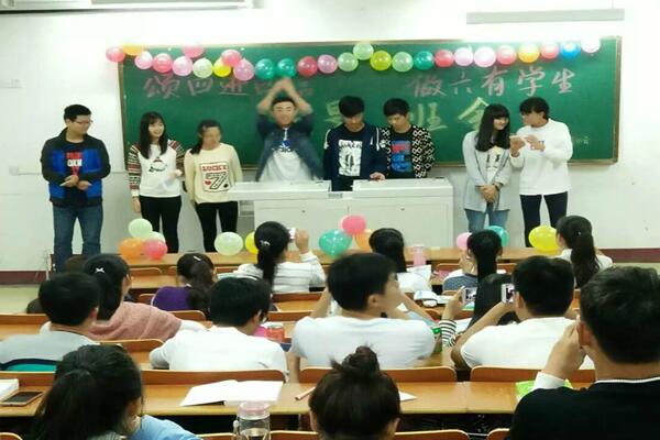 10月20日晚19:00点,16旅管(1)班在北区教学楼1101教室召开“颂四进四信做六有学生”主题班会,班会以晚会的形式举行,16旅管(1)班全体同学参会。