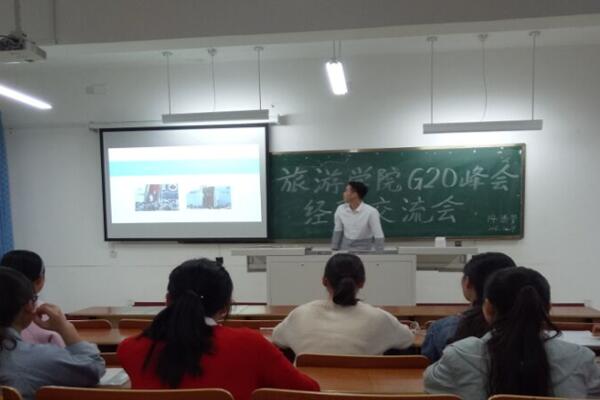 10月19号下午3点,14酒管班五位同学与16酒管班四十位同学共同参与了“G20峰会经验交流会”。会议由班长刘艺凡主持。