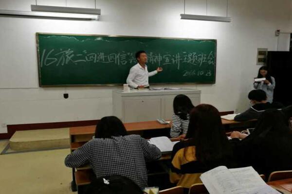 为贯彻习近平总书记对青年学生的“六有”要求,深化同学们对“四进四信”的认识,10月23日晚上19:00点,16旅管(2)班在北区一教楼1501教室召开“深化四进四信 争做六有青年”主题班会,班会由文艺委员孙李慧同学主持,16旅管(2)班全体同学参会。