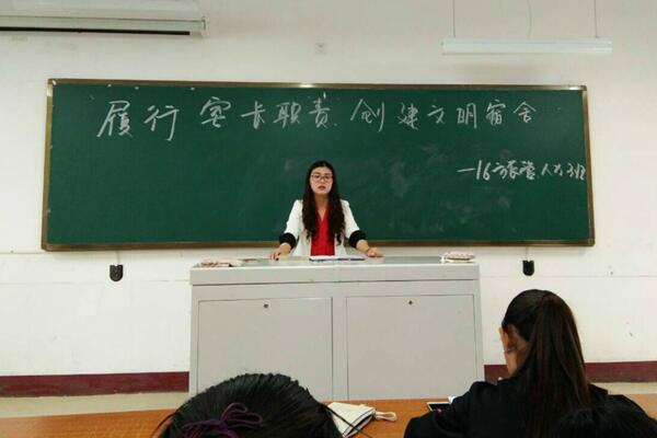 10月31日中午12:00,16旅管(1)班、(2)班、(对口)班、16人力班在北区教学楼1101教室召开“履行室长职责,创建文明宿舍”宿舍长会议。会议由辅导员凌淑瑜主持,四个班级的全体宿舍长参加此次会议。