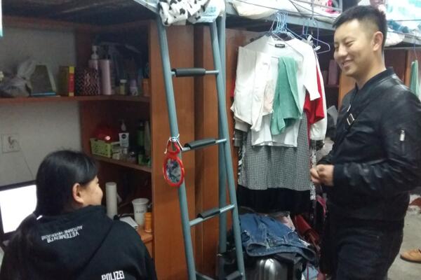 11月7日晚,13旅管(3)班辅导员杨潇老师在班委的带领下走访班级男女生宿舍,看望送别即将去酒店实习同学们。