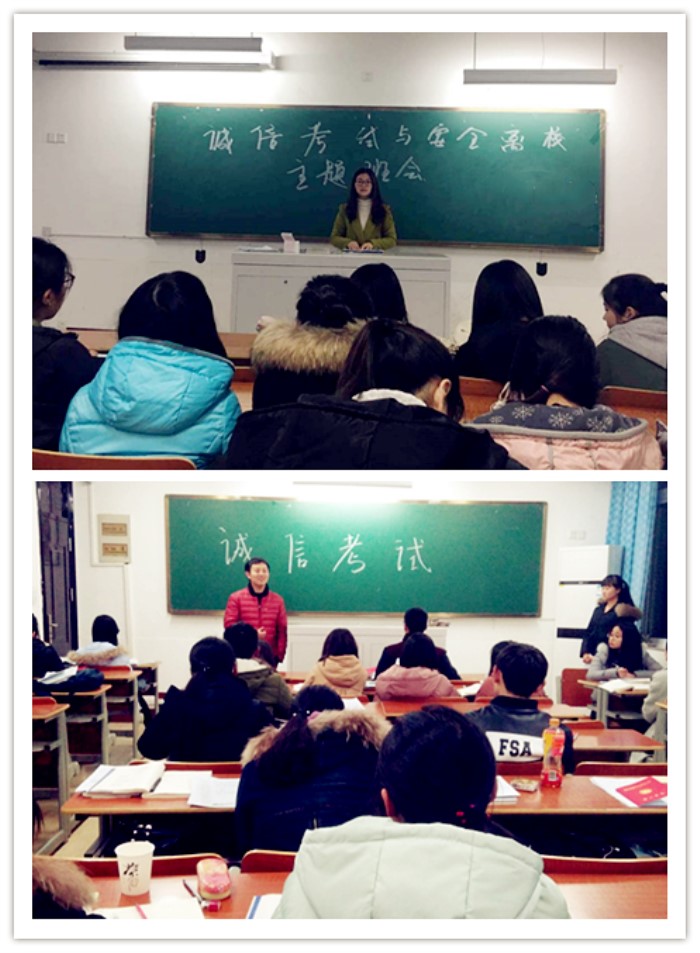 活动中,各班级辅导员倡导广大学生积极备考,拒绝侥幸心理;严肃考风考纪,实事求是;提升个人素质,杜绝一切考试作弊形式。该院团总支学生会组织各班同学积极参加“一句承诺·一份诚信”活动,倡导积极备考,诚信应考。各班级同学认真学习《黄山学院全日制学生考试工作暂行规定》及考试纪律和要求,并对《学生手册》上关于学位授予、学籍管理、考试暂行规定等系列文件进行详细解读,强调诚信考试的重要性。