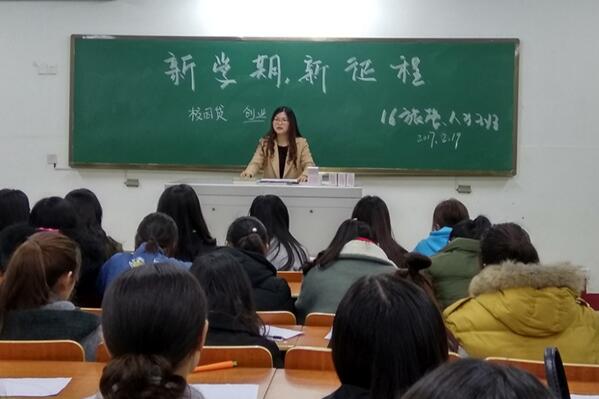 新学期伊始,我们怀揣着希望,又踏上了新征程。2月19日晚20:00,16旅管(1)班、16旅管(2)班、16旅管(对口)班和16人力班在北区1101教室召开“新学期、新征程”主题班会。班会由辅导员凌淑瑜老师主持,16旅管班和16人力班的全体同学参会。