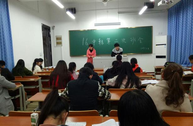 3月8日晚,16旅管(中韩)班在北区教学楼1210室召开新学期第二次班会。全体同学出席本次会议。