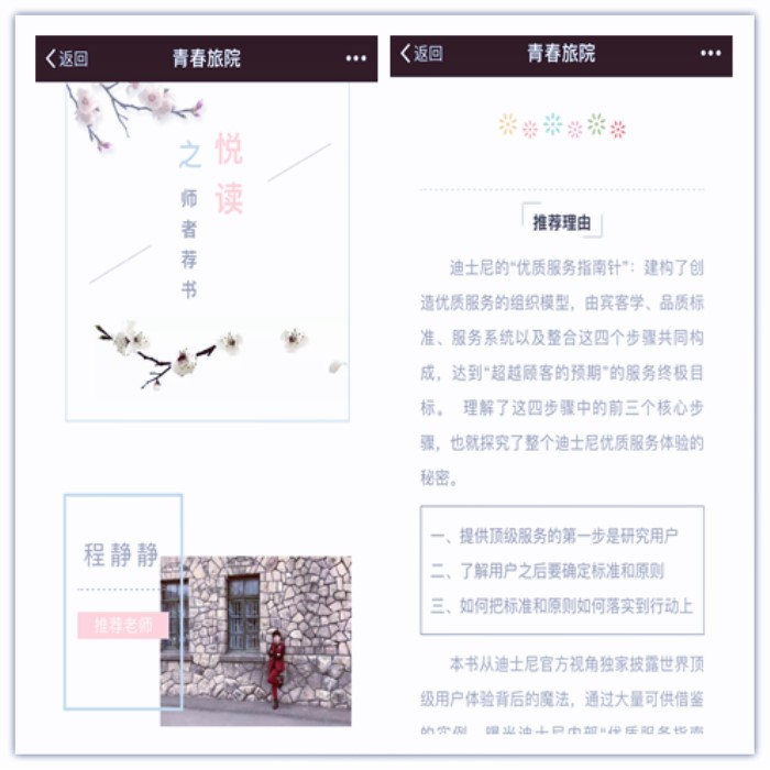 4月5日起,旅游学院“悦读”师者荐书线上活动正式启动。通过采访各专业教研室老师,由老师推荐一本好书,通过微信线上平台发布,让同学们懂得何为有益之书,从而进一步的寻书,品书。第一期中,会展经济与管理教研室主任程静静老师主推益于专业学习的书籍《迪士尼体验:米奇王国的魔法服务之道》,通过发掘迪士尼内部“优质服务指南针”的核心运营方法,将本专业的书本知识与实例相结合,发散思维,更全面的体会优质服务之道。