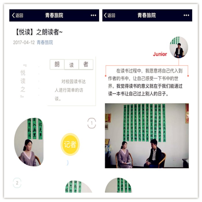 4月8日下午,该院第一期朗读者人物访谈活动圆满完成。活动通过前期寻找校园读书达人,进行简单访谈,来进一步分享校园读书达人的阅读经验,通过朗读喜欢的文字,激发更多同学们的共鸣,寻找阅读的乐趣。首期请来的嘉宾龙东冉同学就在访谈中强调:阅读应寻找适合自己的作品,而不是偏信或盲从。