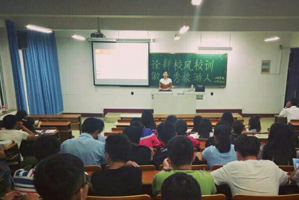 为响应学校“四风建设年”的号召,规范学生日常学习生活行为,16酒管班于5月11日晚7点在1401教室召开“诠释校风校训、做优秀旅游人”主题班会,会议由班长刘艺凡主持。