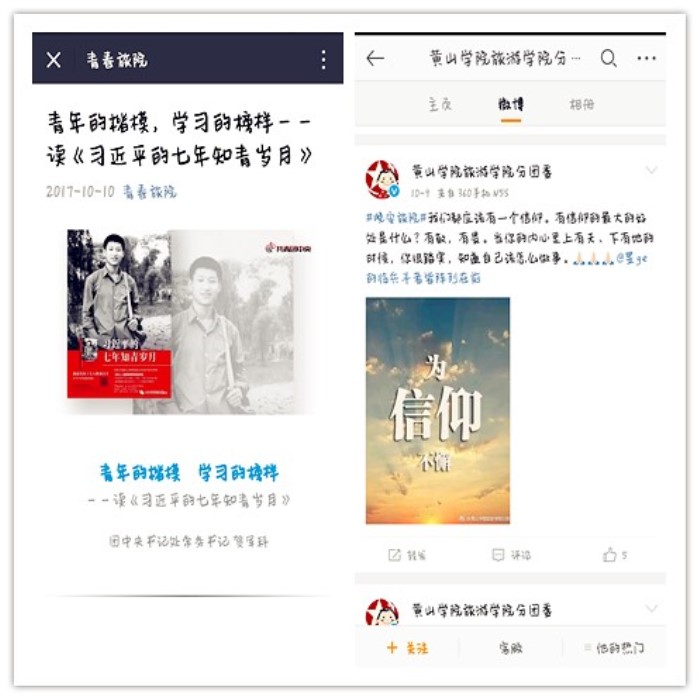 旅游学院在微博、微信等线上新媒体平台发布了“青年的楷模,学习的榜样——《读习近平七岁知青岁月》”一文,指导同学们进一步领悟书中内涵,领会习近平总书记所述的青年朋友们要历经“宠辱不惊的心里素质”以及“百折不挠的进取精神”,坚守初心、坚定理想,在不懈奋斗中创造未来的殷殷嘱托。