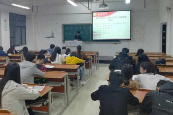 黄山学院《学生管理规定学习手册》涉及学生的权利与义务、学籍管理、校园秩序与课外活动、奖励与处分、学生申诉等诸多方面,因此,在学习过程中,每个同学都认真听讲,并对不懂的地方提出疑问,力求能完全理解《学生管理规定学习手册》上的内容。为促进学习活动的开展,本次班会形式多样,同学们上台分享学习心得体会和学习方法,保证了同学们能够把握手册上的精神和实质要求,并于在校期间严格遵守学校相应的规章制度,努力成长为社会需要的当代大学生。