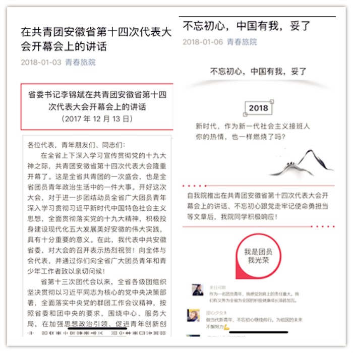1月3日,旅游学院团总支微信公众号上发布了共青团安徽省第十四次代表大会上的系列发言稿,引发了该院青年团员的热议,同学们纷纷在评论区留下了自己的感悟和收获,分享自己的心得体会。6日,公众号上将优秀评论整合发布,展现了该院团学青年志存高远,脚踏实地的精神风貌。
