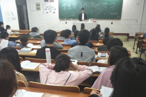 因九月份我们即将迎来第一次的综合测评,为此,于4月3日晚21:00,17酒管班在北区1203教室开展了“学生奖助评选学习”主题班会。本次班会由辅导员章勤老师主持,17酒管班全体同学参与。