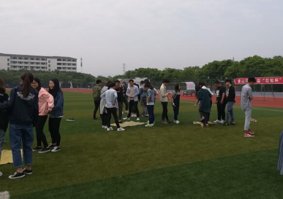 活动内容包括三个部分:“翻叶子”、“三足四手”、“解手环”。活动开始之前,汪颖达老师详细解说活动内容、步骤和注意事项,并组织部分同学进行现场演示。一切准备活动就绪,15人力班全体被分为10个小组,班委协助分发活动所需材料,到达指定岗位,随后全体同学进入紧张的活动中去。在有限的时间内,各小组成员集思广益,相互配合,团结合作完成活动的所有项目,并且在活动结束后接受更高难度的挑战。汪颖达老师现场对活动进行指导和点评,指出活动中的不足以及亮点,最后在全体师生的协作下,这一系列课堂活动圆满结束。
