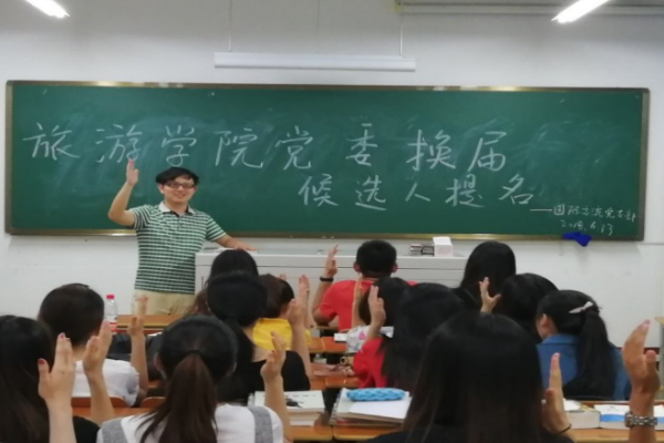 6月13日晚9点,根据院党委安排部署,国际交流党支部在北区教学楼1210教室召开旅游学院党委换届提名大会,出席本次会议的有党支部书记杨潇老师和党支部全体党员和学生党员。大会由党支部书记杨潇老师主持。