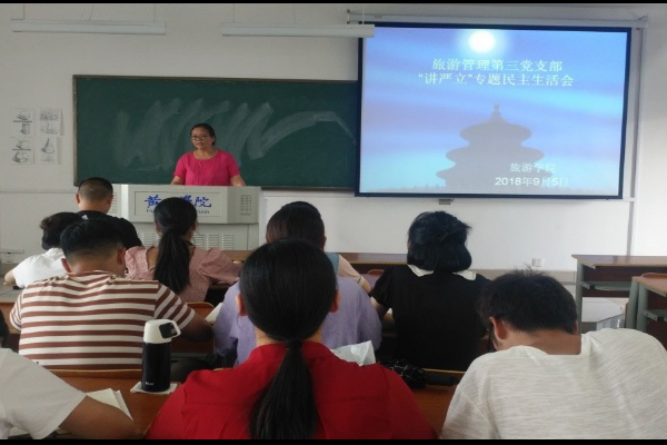 9月5日中共黄山学院旅游学院旅游管理第三党支部在逸夫5404召开了“讲严立”专题组织生活会,参加此次会议的有旅游学院第三党支部的教师党员、学生党员、预备党员。会议由旅游管理第三党支部书记张俊香老师主持。