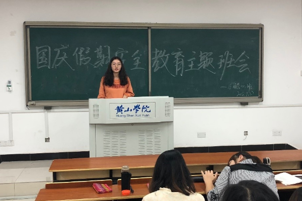 为了提高同学们的安全防范意识,9月27日下午16点,16旅管(2)班在率水校区文渊楼1402教室召开“国庆假期安全教育”主题班会,会议由团支书贾先云同学主持,全体同学积极参加此次班会。