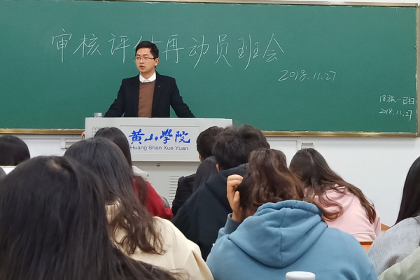 11月27日晚,辅导员章勤在率水校区五教5501教室开展了审核评估再动员班会。