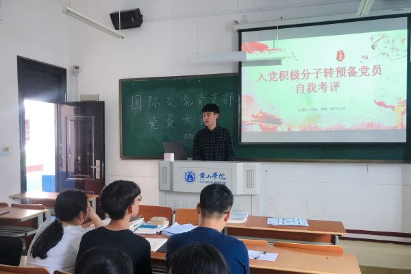 为做好国际交流党支部上半年党员发展工作,从符合发展条件的入党积极分子中遴选出优秀的预备党员,4月27日下午,国际交流党支部在横江校区1210教室召开党员大会,对发展对象进行全面考评。国际交流党支部支部书记黄惠敏,全体师生党员及入党积极分子参加了本次会议。
