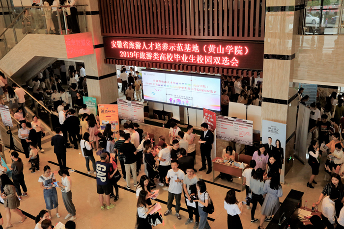 5月18日,在中国旅游日来临之际,由校就业指导中心和旅游学院联合举办的安徽省旅游类高校毕业生黄山学院校园双选会在我校文思楼隆重举行。旅游学院党委书记毕民智、党委副书记方磊、安徽省教育厅大中专毕业生就业指导中心刘斌莅临双选会现场,校学生处、旅游学院相关老师及该院2019届全体毕业生参加本次活动。